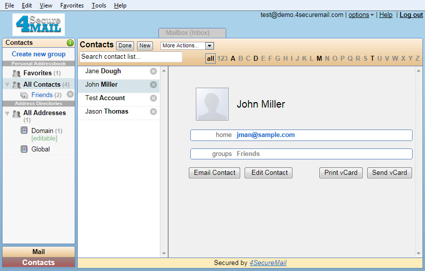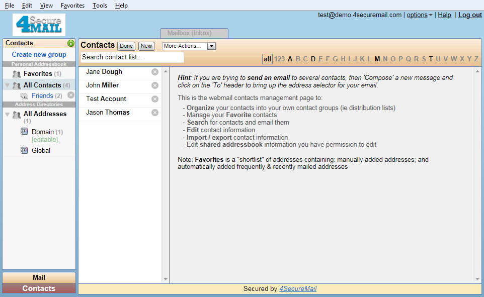 • "All Contacts" is a list of all personal contacts webmail knows about, excluding shared contacts. Personal contacts not belonging to any group are visible in this group.