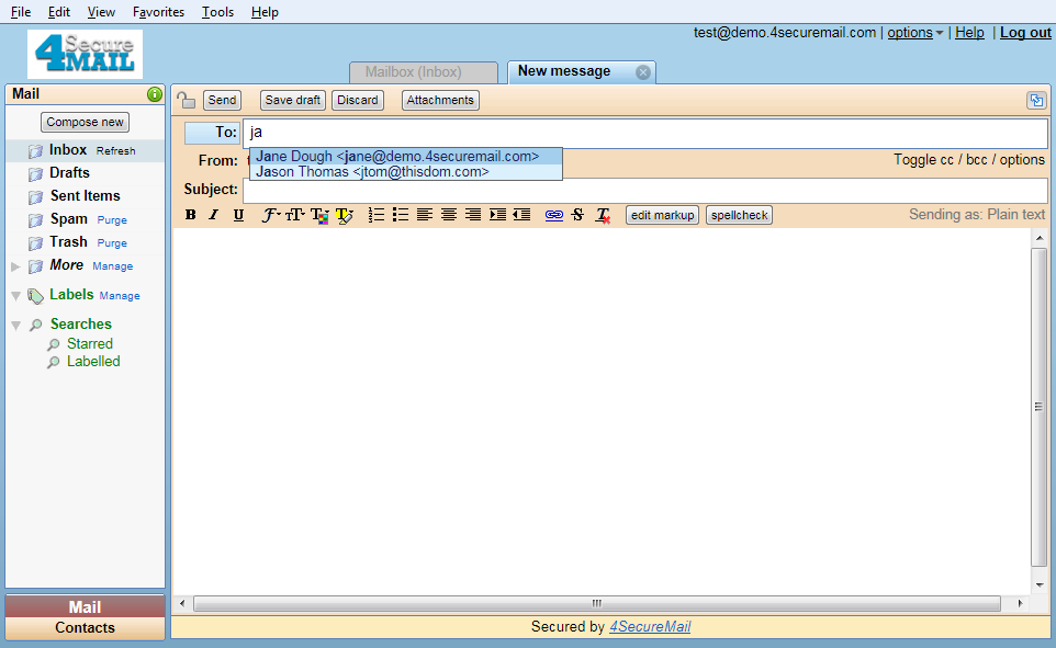 • Groups - Your personal contact groups are listed here. Entire groups can be added as a recipient. Click the small cross to expand a group within the recipient list.